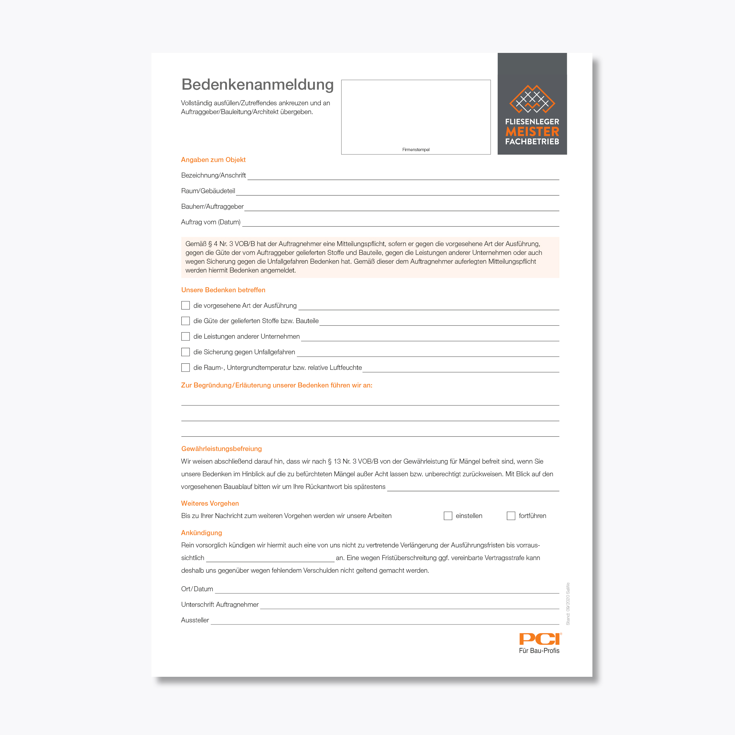 Produktinformationen "Formular Bedenkenanmeldung"